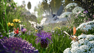 Bei dieser Gelegenheit durften alle mit dem Insektensimulator als Schmetterling durch eine Blumenwiese fliegen und die Freuden und Leiden der Insekten hautnah zu erleben.