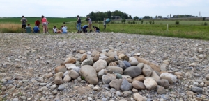 Der Damm musste vom gemähten Gras, und die grosse Kiesfläche vom Unkraut befreit werden.