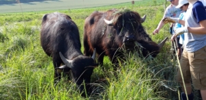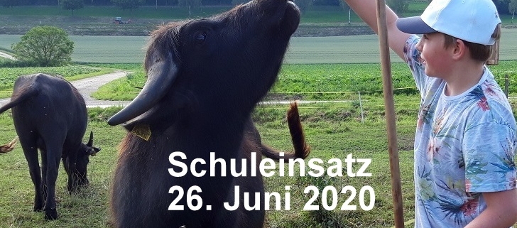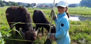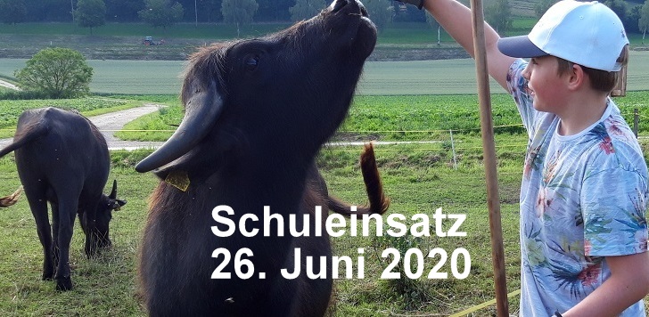 Den Kindern, auch Laetitia Huber und Niilo von Büren, bereitete die Arbeit an der Seite der Wasserbüffel, trotz morgendlicher Hitze, viel Spass.